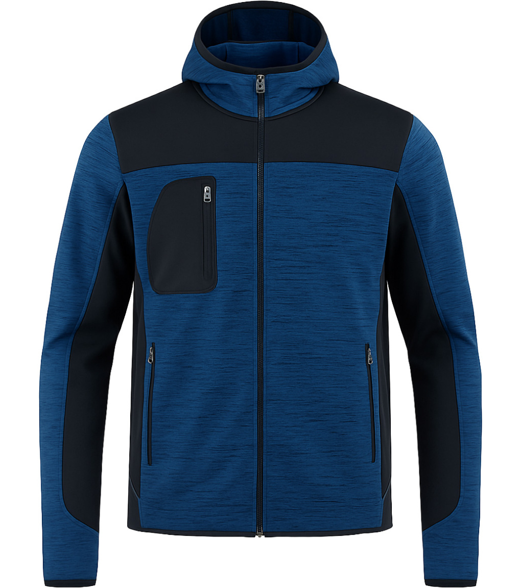 Kombinace techniky se softshellovými materiály a kontrastními barvami. Dvoubarevné provedení s utěsněným celopropínacím SBS zipem. Má tvarovanou kapuci s dvojitým prošitím, tenký elastický lem na rukávech a spodním okraji. Praktické uspořádání kapes pokryje dvě kapsy na zip a jednu kapsu na hrudi.