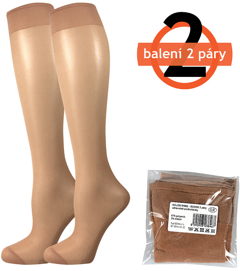Dámské podkolenky s velmi jemným svěrem lemu, se zesílenou špicí, 20DEN.