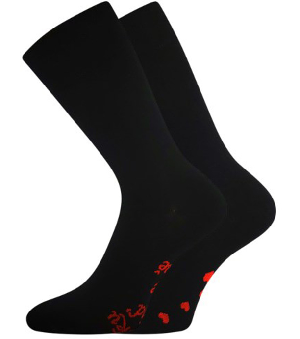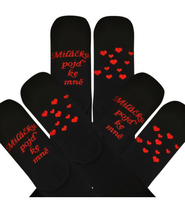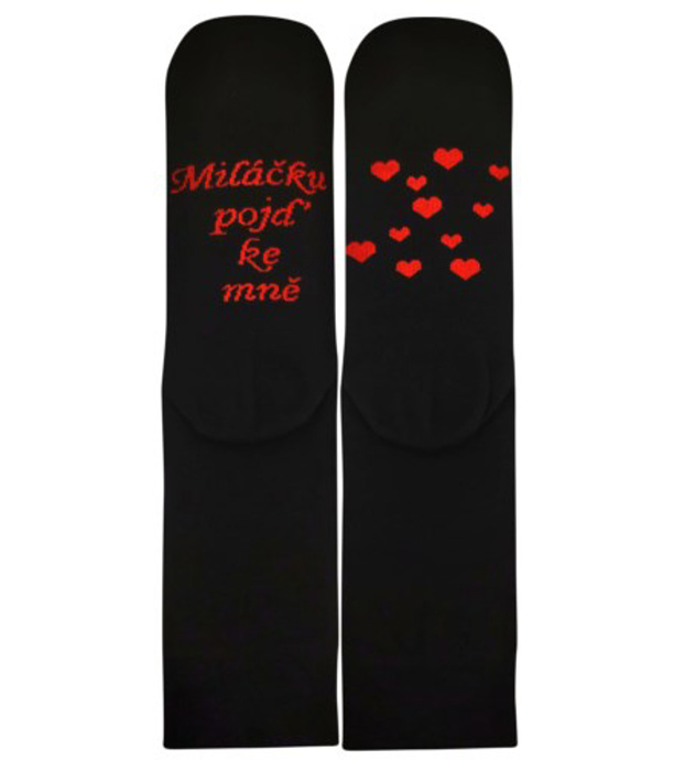 Valentýnské ponožky pro ženy i muže potěší originálním vzkazem na chodidle, který zůstane malým tajemstvím jen pro vašeho miláčka. Nadčasový černý design doplňuje pohodlný, jemný lem, který netlačí ani neškrtí. Řetízkovaná špice zajišťuje maximální komfort při nošení – bez otlaků a puchýřů.