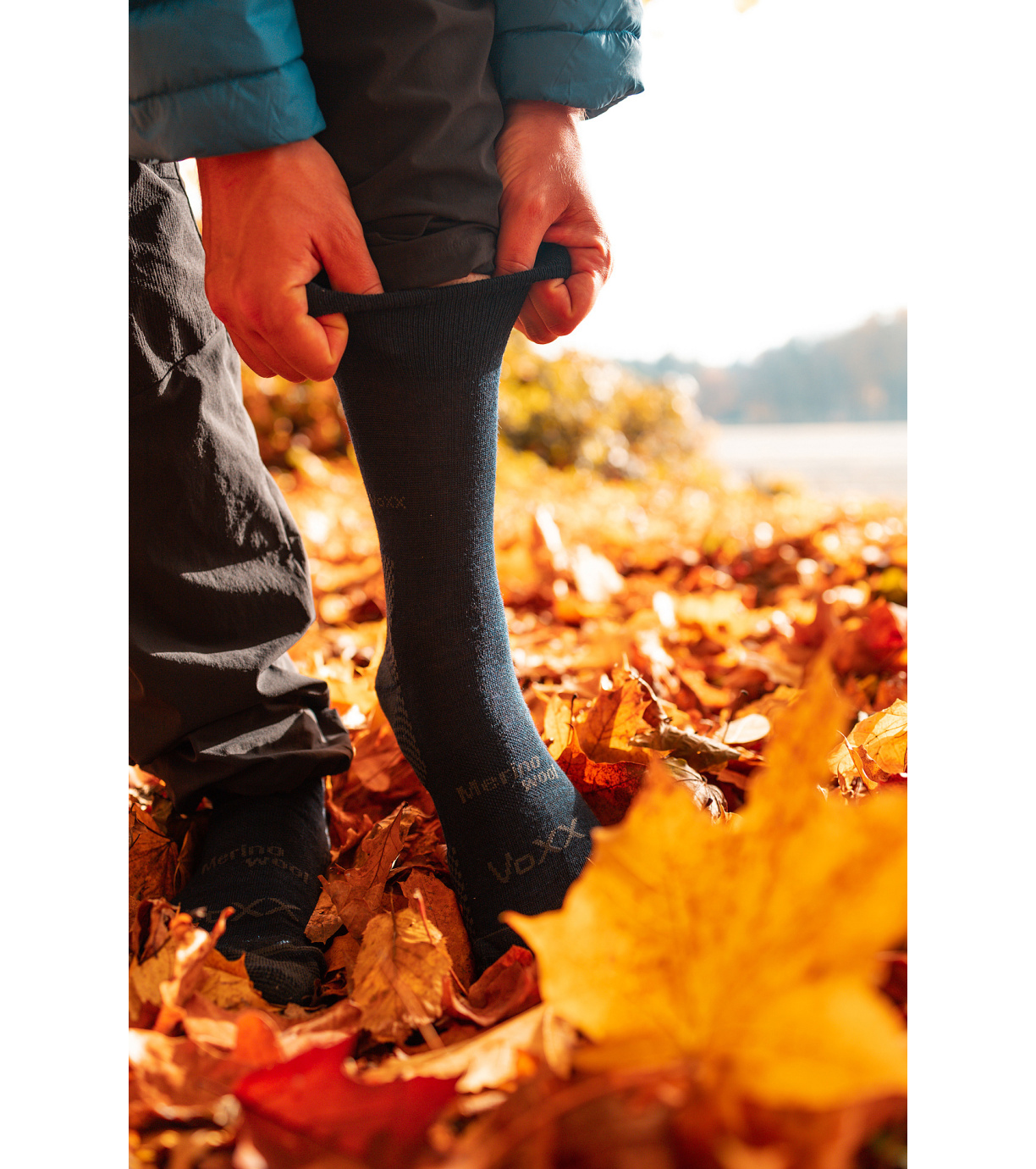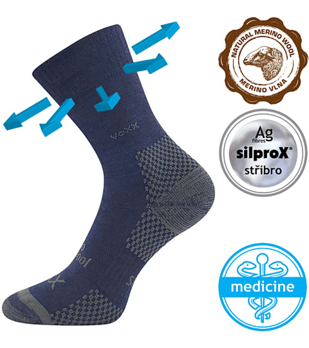 Sportovní vlněné ponožky VoXX® MENKAR z merino vlny můžete nosit po celý den. Tyto unisex ponožky mají speciální jemný nestahující lem s polstrovaným froté chodidlem a řetízkovanou špicí, udrží tak vaše nohy ve formě při jakémkoliv sportu. Žádný zápach nepřichází v úvahu díky antibakteriální ochraně ionty stříbra v materiálu silproX®. V teplotní třídě C do -20°C vám zima určitě nebude.