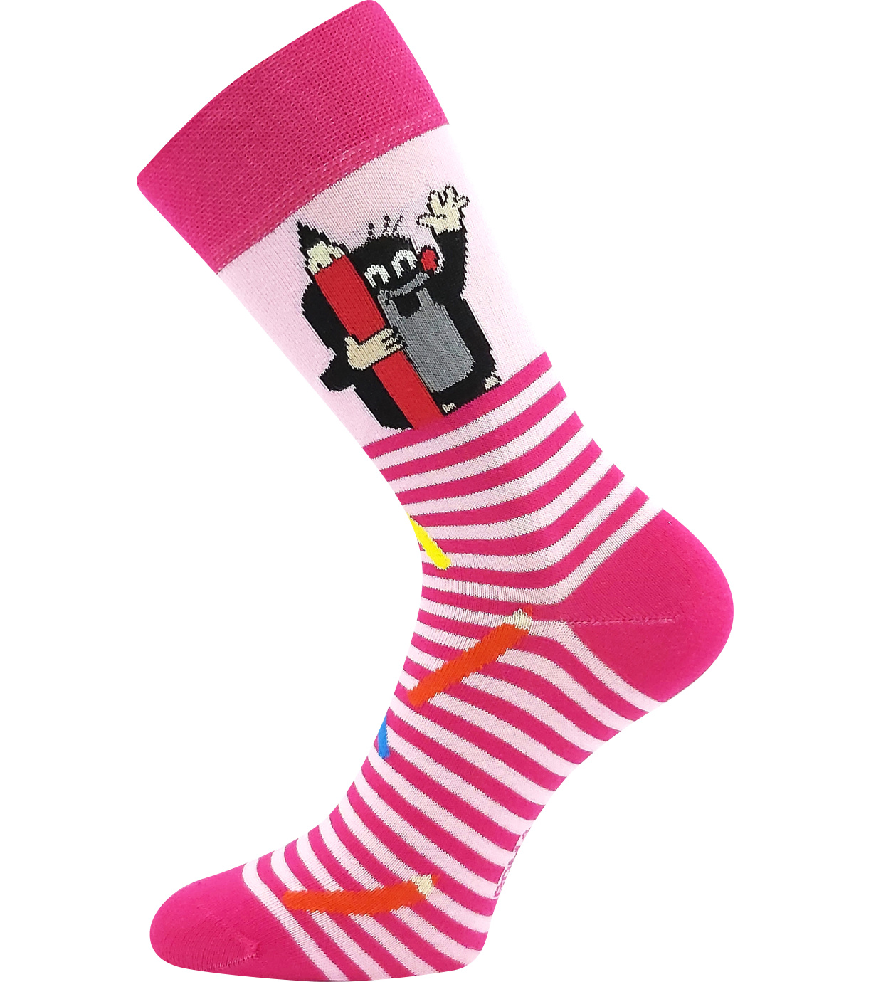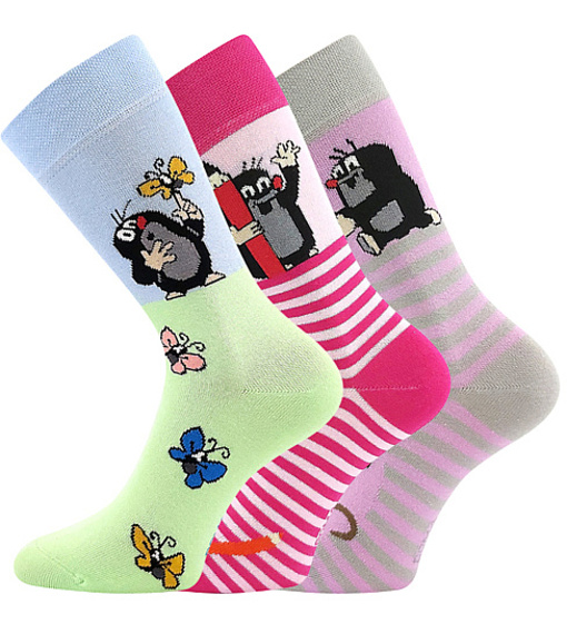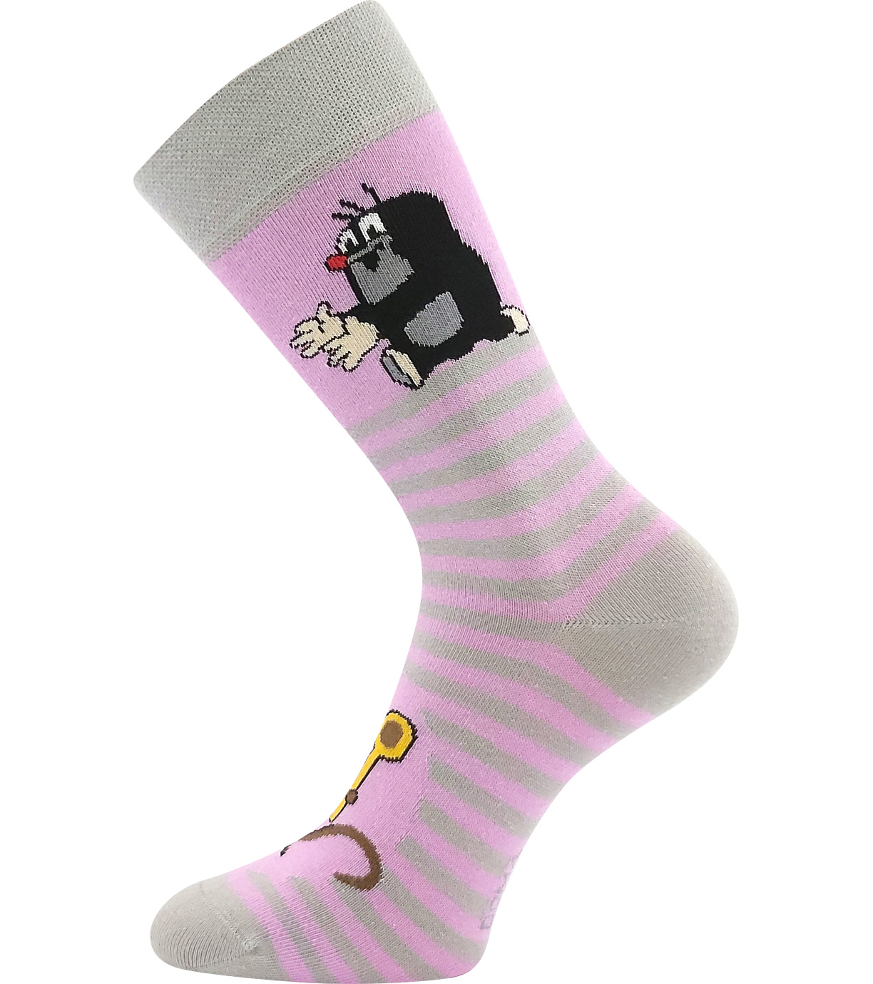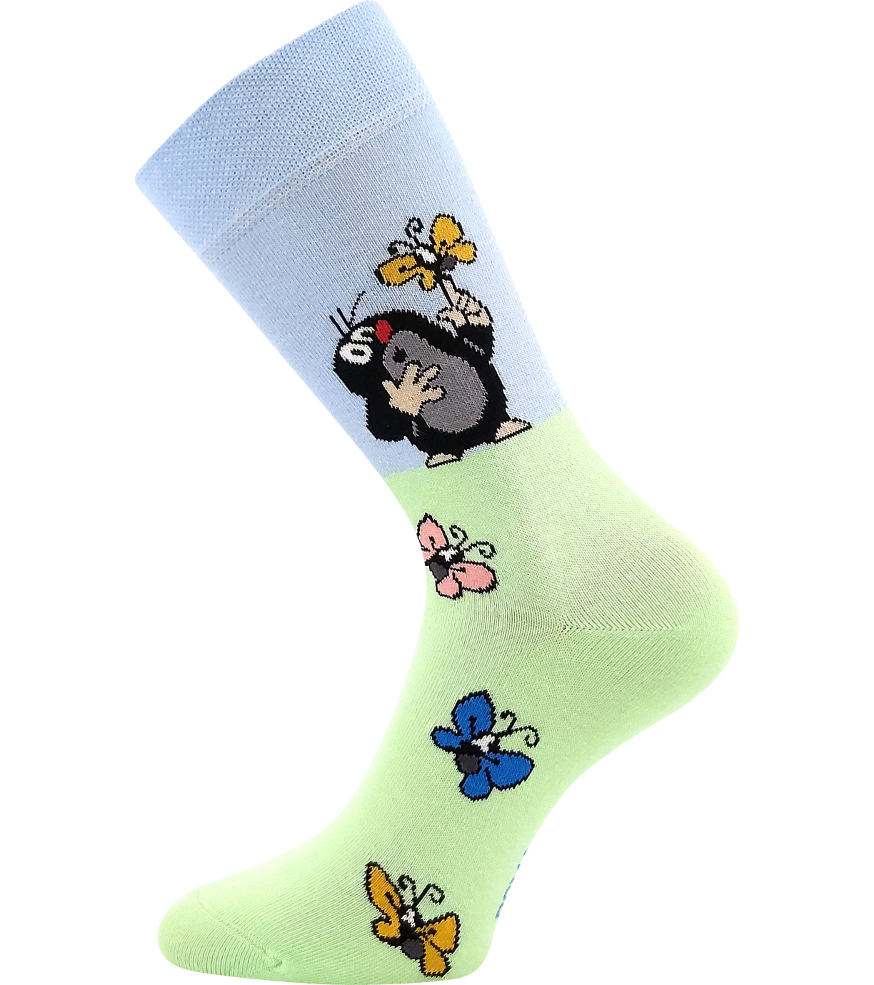 Společenské a vtipné ponožky Boma® KR 111 jsou slabé ponožky s roztomilým obrázkem Krtka od malíře Zdeňka Milera. Vraťte se do říše pohádek a pořiďte si Krtečka do svého šatníku. Klasické ponožky s vysokým podílem bavlny oživí váš outfit, ať už nosíte oblek nebo džíny. Lepší mít Krtka na ponožkách než v trávníku!