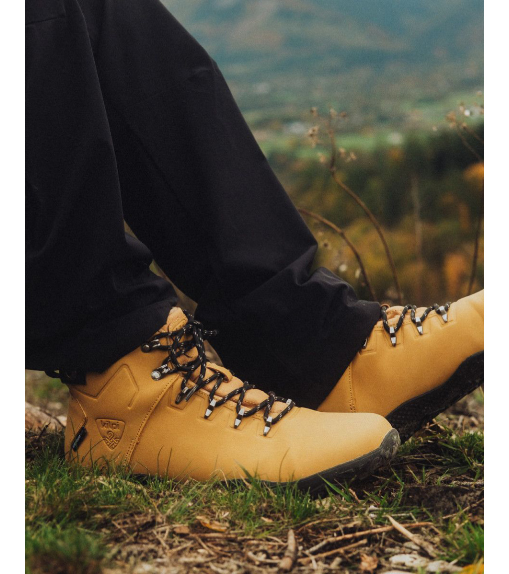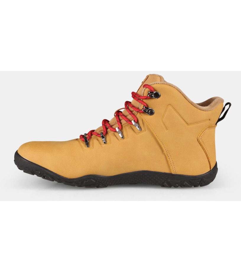 Díky volnějšímu střihu, respektujícímu anatomii vašich nohou, budou mít vaše prsty dostatek prostoru. Vyrobeny z technické kůže, která je snadno udržovatelná, připomínající pravou kůži. Boty jsou odolné proti vlhkosti, díky vnitřní membráně, takže s nimi můžete vyrazit i do deště a vlhka. Vnitřní stélka z hebkého mikrofleecu zajistí, že budete mít nohy v teple i v chladnějším počasí. Nylonové tkaničky pevně fixují botu na vaší noze a zajistí stabilní kroky. Navíc, získáte bonusový pár tkaniček v kontrastní barvě pro stylový vzhled. Dopřejte svým nohám pohodlí a ochranu díky měkké tlumící vložce s mikroperforací, která tlumí dopady, izoluje před chladem a zajišťuje lepší odvětrávání. S 3mm tenkou pryžovou podešví s multiterénním vzorkem, zdoláte lehké výšlapy s pocitem bosých nohou a přitom pogumované chrániče špiček prstů, vás ochrání před nepříjemnými nákopy.
