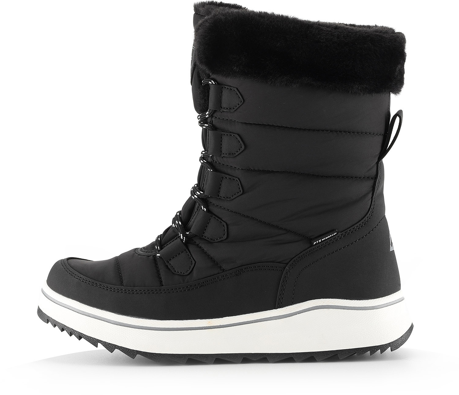 Dámská zimní obuv kombinuje syntetiku a textilii ve svršku, což zajišťuje odolnost i pohodlí při nošení. Díky speciální úpravě materiálu s membránou PTX je obuv prodyšná a zároveň chrání před vlhkostí, takže udržuje nohy v suchu i během nepříznivého počasí. Uvnitř se nachází zateplená textilní podšívka, která poskytuje příjemné teplo a komfort v chladných dnech.