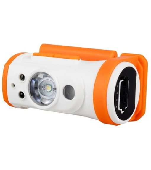 Ultralehká, voděodolná, polohovatelná svítilna MUSCA s výkonnou diodou a červenou LED diodou. Bezdotykové zapínání pomocí senzoru. Indikace stavu baterie pomocí 4 LED. Svítilnu je možno nosit na pásku kolem hlavy, v ruce, nebo ji připevnit na kšilt. Odolné proti stříkající vodě (IPX4).