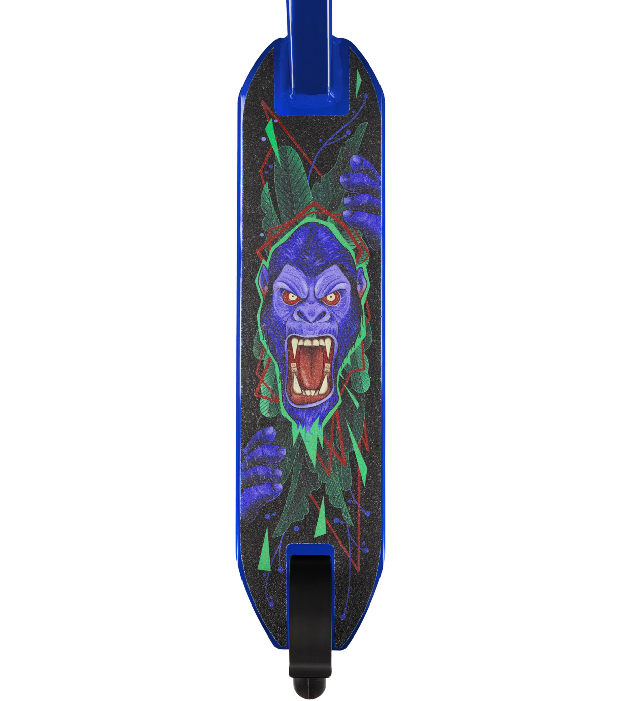 Model APE má kompresní systém SCS, který zvyšuje jeho odolnost a umožňuje bezpečné provádění nejnáročnějších triků. Neobvyklá nášlapná deska s gorilou v hlavní roli byla navržena umělkyní Izou Dudzik, což dodává koloběžce originální a nezaměnitelný vzhled.