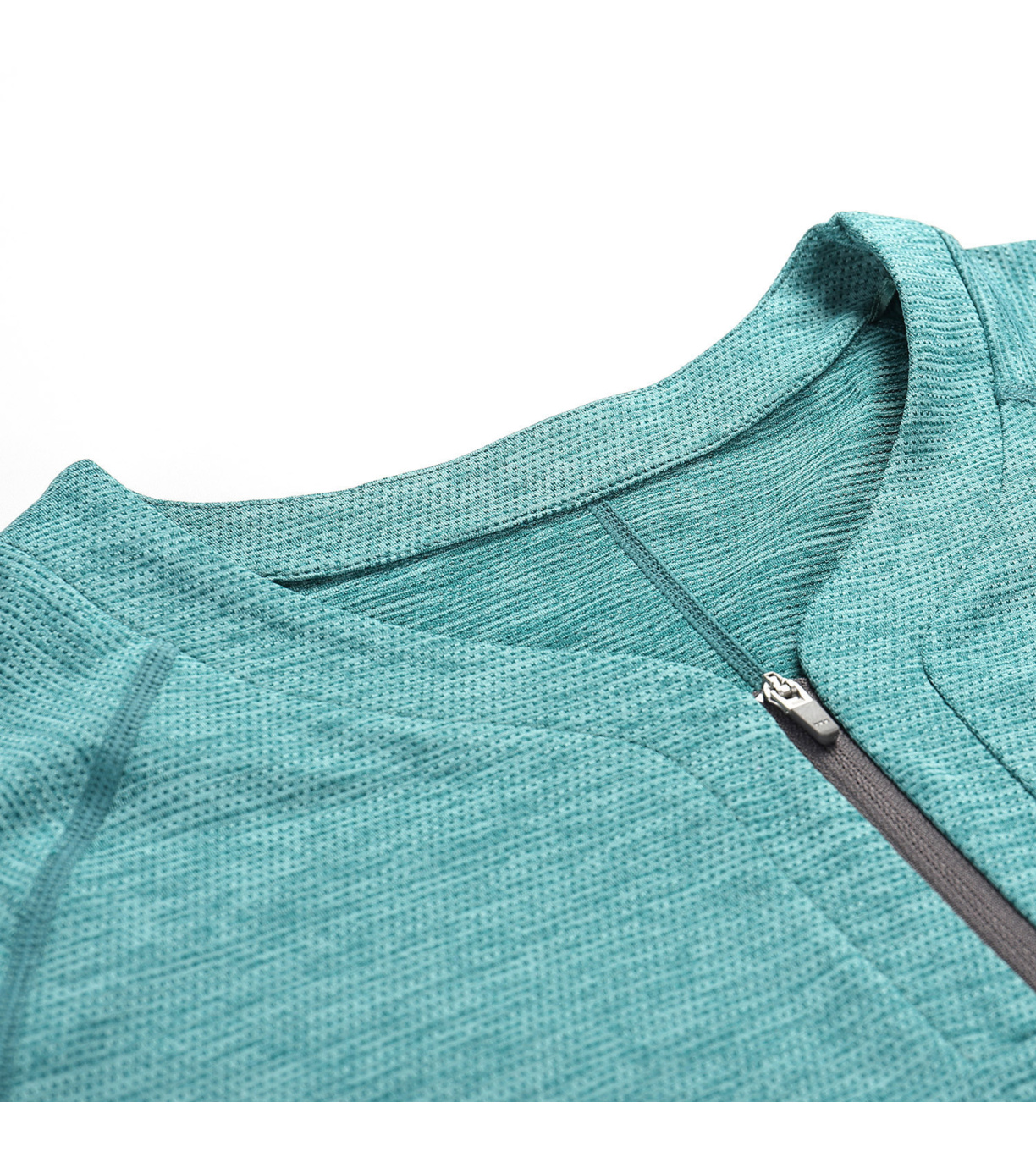 Dres má přiléhavý sportovní střih, který krásně kopíruje siluetu a neomezuje v pohybu. Krátký zip u krku umožňuje snadné odvětrání, zatímco dekorativní prošití a decentní potisk na rukávu dodávají triku moderní vzhled. Praktická vnější kapsa na zádech je ideální pro uložení drobností, které potřebujete mít po ruce. Tento model představuje ideální první vrstvu pro maximální komfort při každé jízdě. Skvělá volba pro každou aktivní ženu, která ocení funkční materiály, detailní zpracování a svěží design.