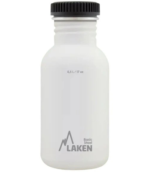 Moderní jednoplášťová láhev LAKEN z nerezové oceli 18/8, která zajišťuje naprostou bezpečnost nápoje.