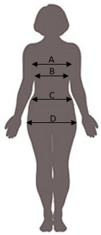 | B | Obvod pod prsy | 69 - 72 | 73 - 76 | 77 - 80 | 81 - 84 | 85 - 88 | 89 - 92 | 93 - 96 | 97 - 100 | 101 - 104 |