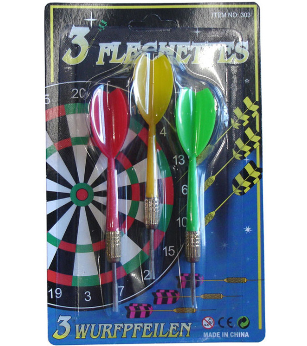 Balení 3 ks šipek s kovovým hrotem.