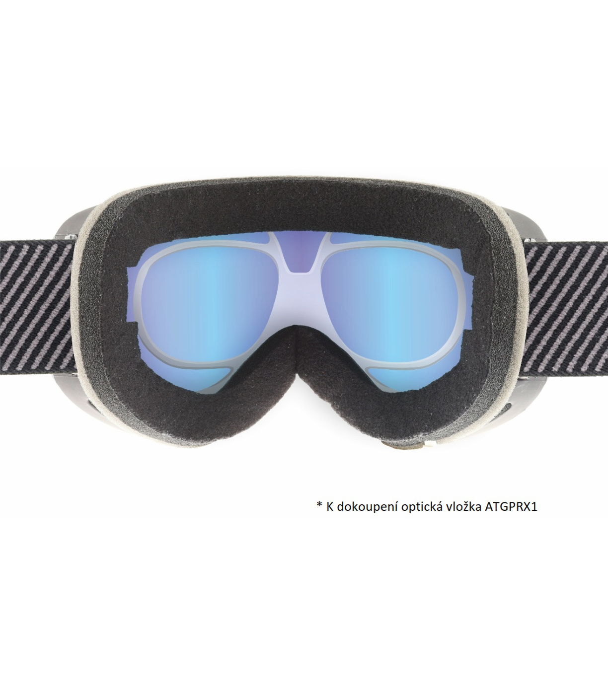 K dokoupení odnímatelná dioptrická vložka do sportovních brýlí. Brýle lze bez omezení používat i bez vložek.
